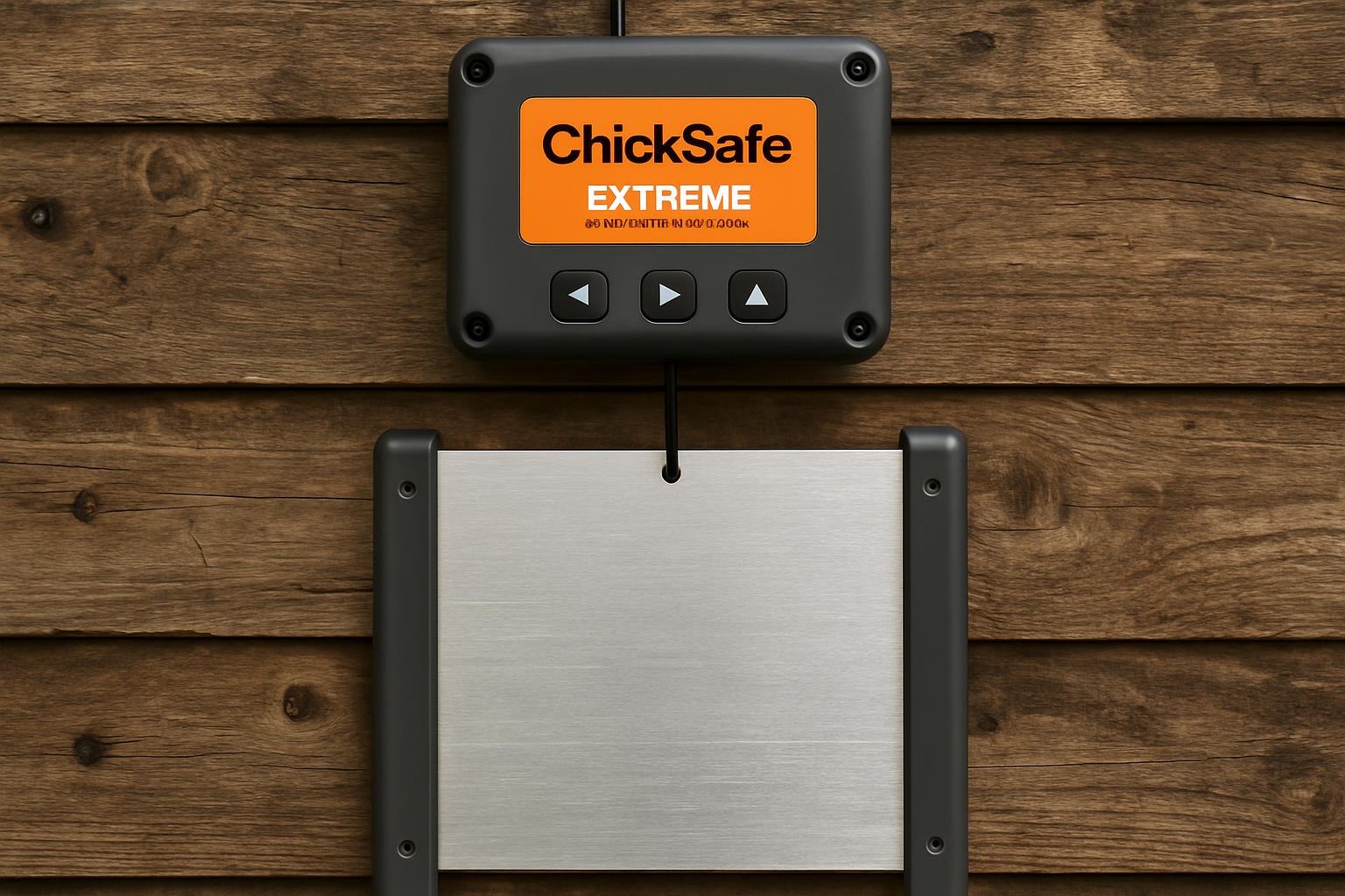 The ChickSafe Extreme Automatic offers advanced microprocessor control, making it highly reliable. Equipped with a light sensor, timer, and a powerful motor, it withstands all weather conditions thanks to corrosion-resistant aluminum components. Perfect for protecting your flock from predators.