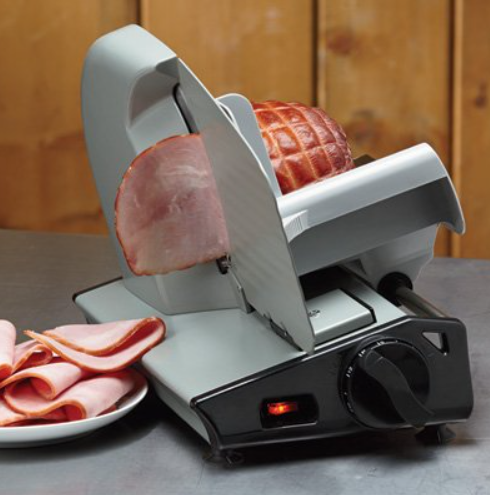 For cutting cheeses, deli meats, and other foods, the heavy-duty 8.7-inch stainless steel electric food slicer from Valley Sportsman is handy and affordable.